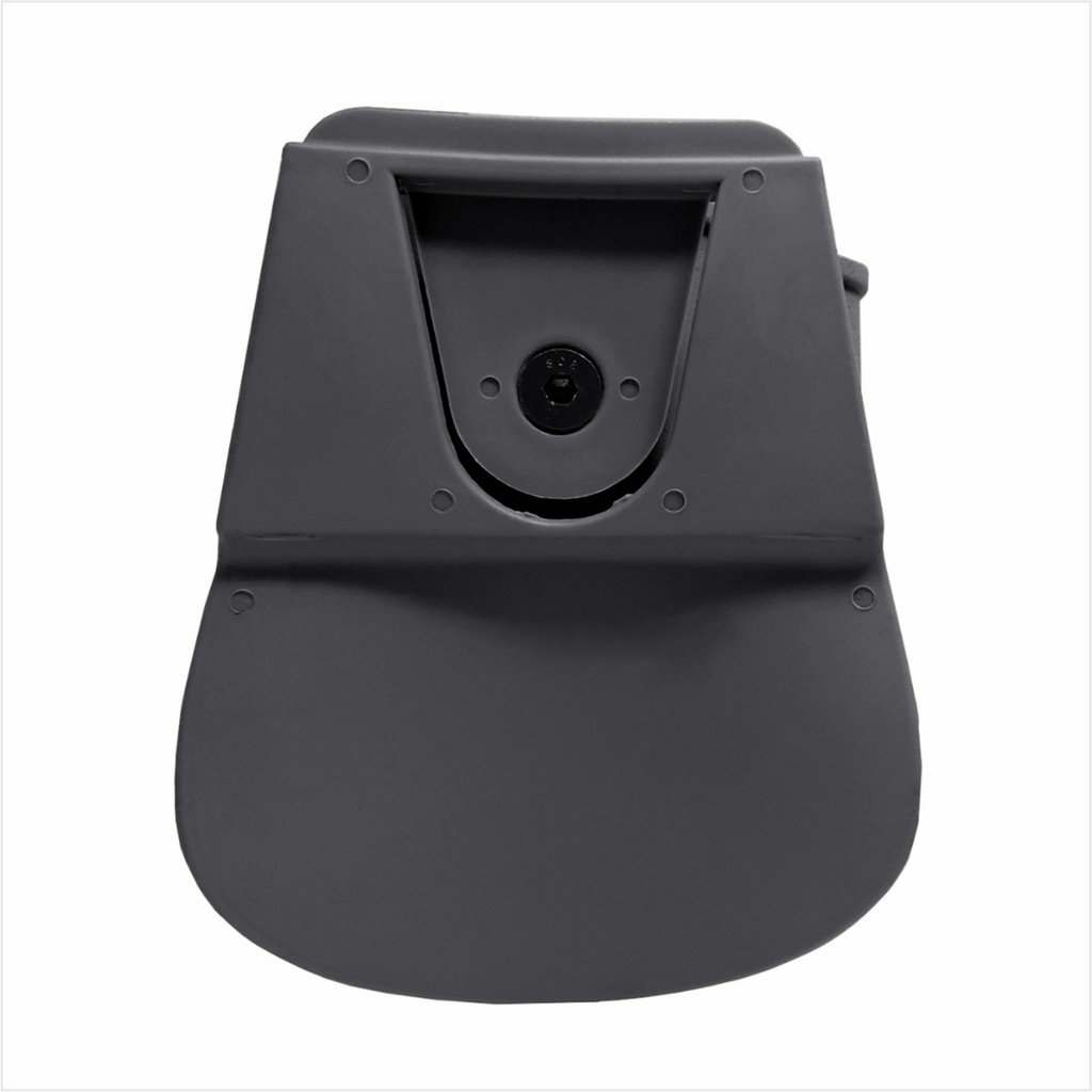 Possui catraca rotativa, permitindo a angulação do Coldre em sua base, facilitando o manuseio da arma;